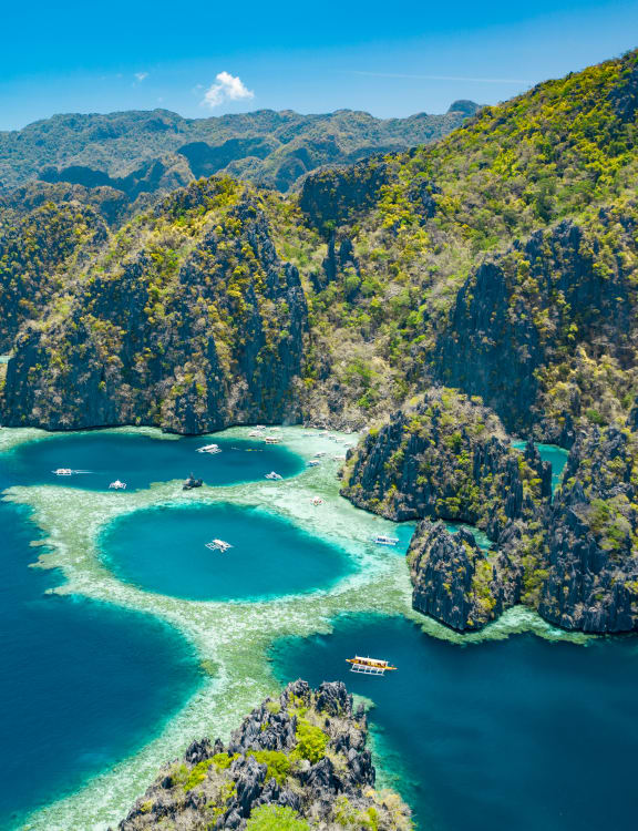 Die Inselwelt von Coron, nördlich von Palawan gelegen, gehört zu den spektakulärsten Landschaften der Philippinen. Dramatische Kalksteinfelsen erheben sich aus smaragdgrünem Wasser, dazwischen liegen versteckte Lagunen, feinsandige Strände und glasklare Seen.